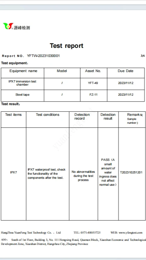 Fresh Water Only: IPX7 is specified in fresh-water conditions, not salt/corrosive liquids.